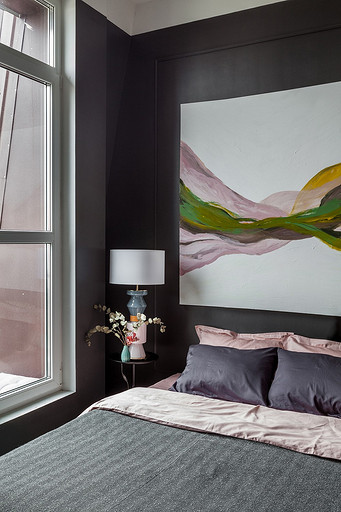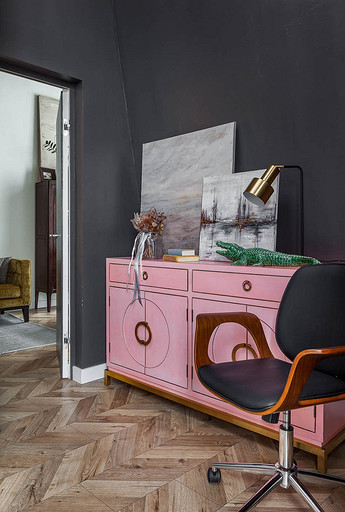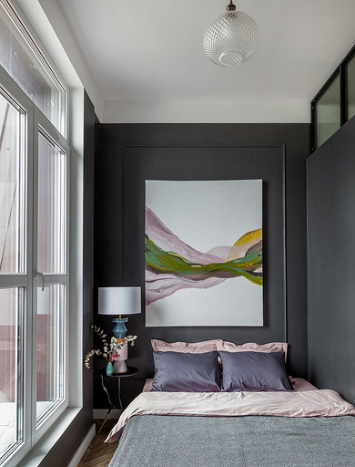 - Декор: картина над диваном — Александр Хорушко, картина на буфете написана автором проекта