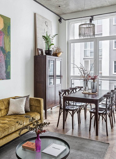 - Мебель: кухня — мебельная мастерская «Мы делаем мебель», кофейный столик — Dutchbone Boli Round, Rialto, обеденный стол, диван, буфет — KareDesign