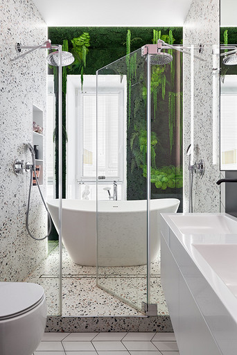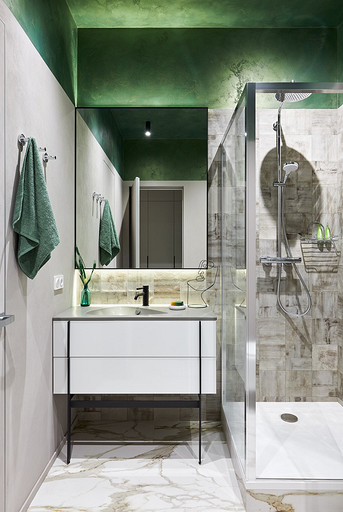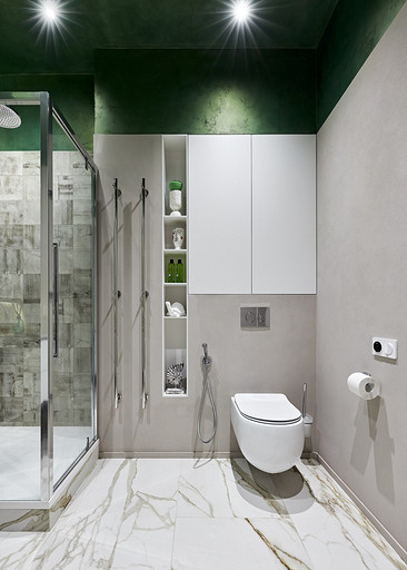 - Сантехника: смеситель для раковины Cisal, гигиенический душ Giulini, подвесной унитаз Gsi, душевая стойка Hansgrohe