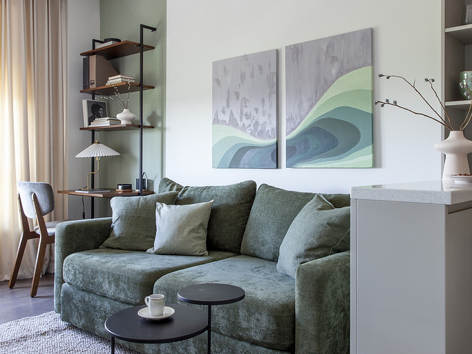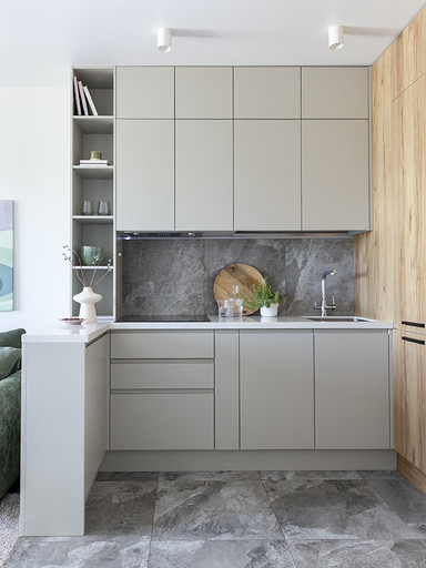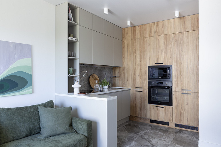 Дизайнер спроектировала спокойный интерьер в природных тонах, который никак не намекает, что за окном — огромный мегаполис. Читать далее...