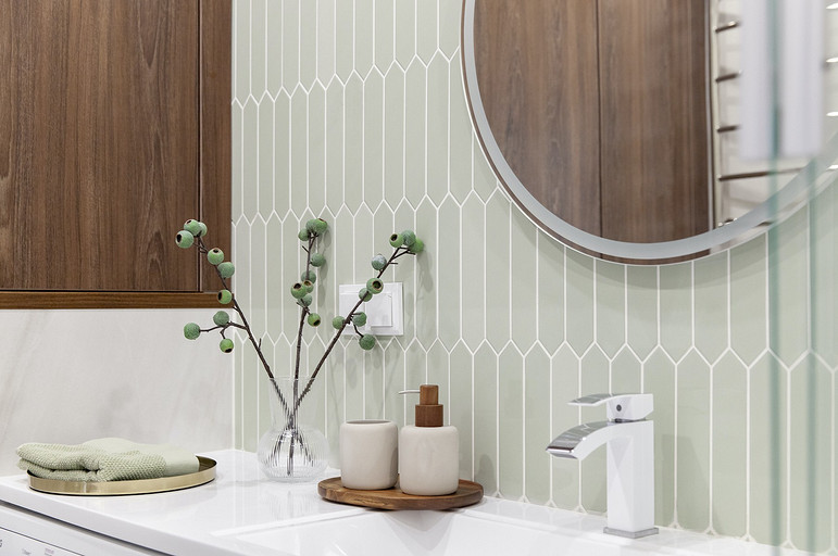 - Стены: краска Sherwin-williams, плитка в ванной Equipe