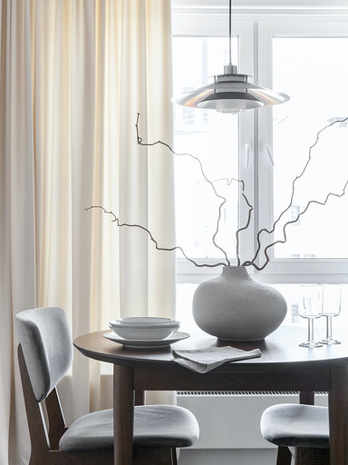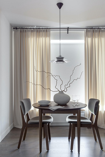 - Освещение: подвесной светильник над обеденным столом Halo Design