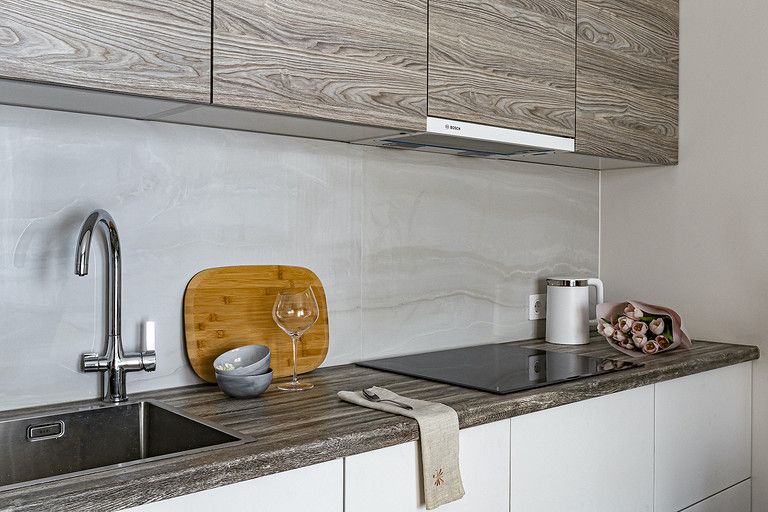 - Стены: краска Mons paint, керамогранит Italon Surface