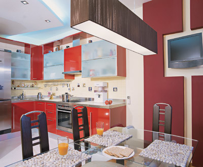 - Оборудование: плита AEG, вытяжка AEG, духовка AEG