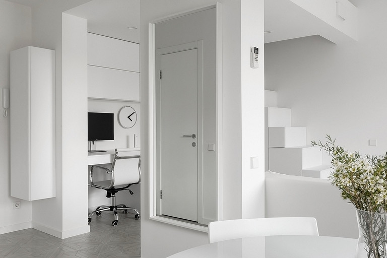 - Освещение: настенные светильники Nowodworski, потолочные светильники Arlight