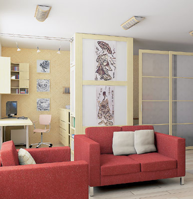 Открытость комнаты подростка в сторону зоны гостиной будет создавать школьнику трудности вечерами. Нужно делать уроки, а так хочется посмотреть телевизор вместе с родителями!