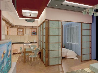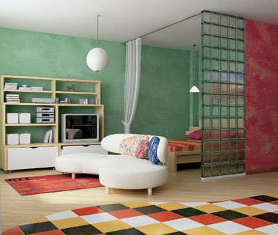 Полупрозрачные перегородки спальни позволяют дневному свету проникать