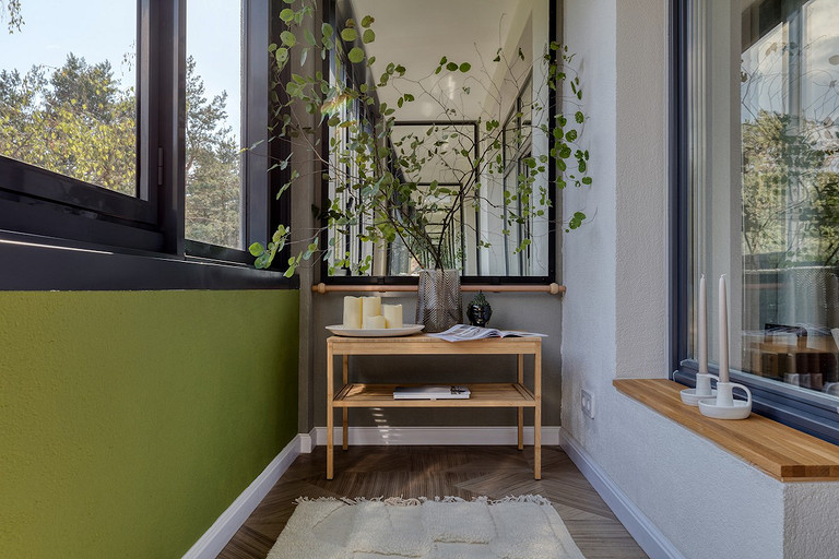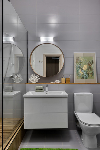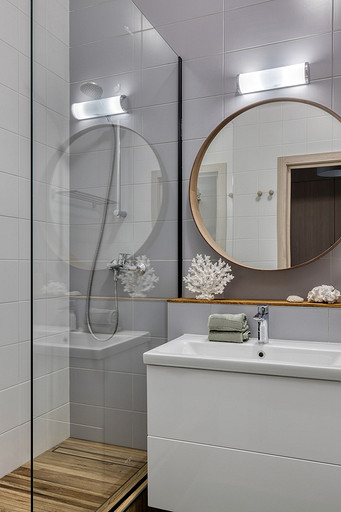 - Пол: кварцвинил на балконе Moduleo, керамогранит в душевой Italon