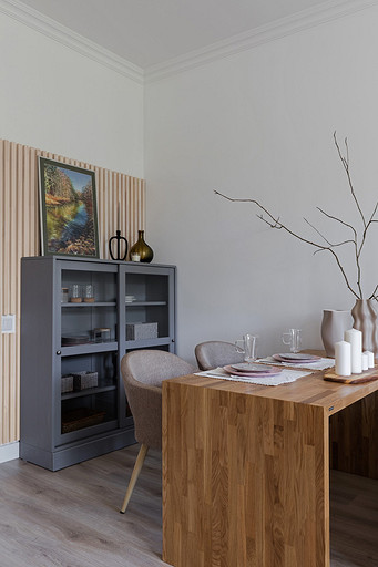 Эти апартаменты находятся в жилом комплексе на берегу Финского залива. Владельцы купили их для того, чтобы иметь возможность выезжать за город и отдыхать в личном пространстве от суеты. Интерьер оформили согласно этому запросу и окружающей среде: получилась светлая и умиротворяющая квартира в экостиле. Читать далее...