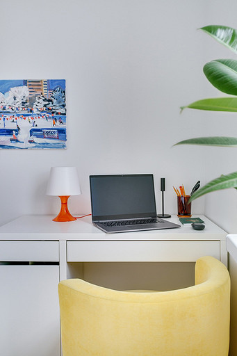 - Декор: картина у рабочего стола Марии Суворовой, серия «Московские дворы», арт-галерея «Вместе»