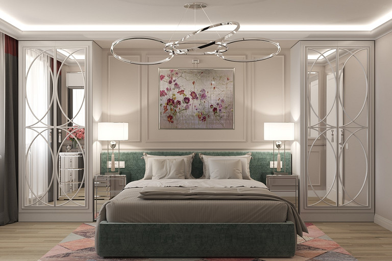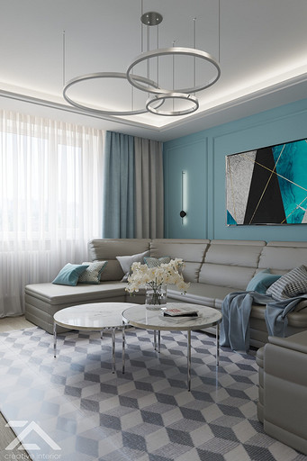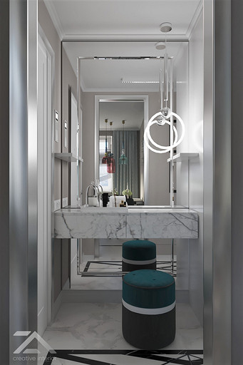 Интерьеры выполнены в стиле современная классика. За основу дизайн проекта стало любимое цветовое сочетание заказчицы. В процессе перепланировки квартира не претерпела сильных изменений, но мы расширили гостиную за счет демонтажа одной из существовавших перегородок, благодаря чему в прихожей появилась возможность разместить полноценный гардеробный шкаф, и при входе в квартиру появилось больше воздуха.