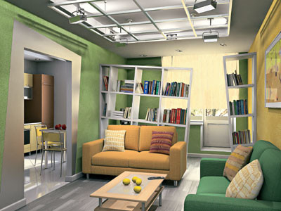 Вшироком коридоре, который продолжает прихожую, предусмотрен еще один модульный стеллаж с книгами. На стене кухни-столовой- копия картины