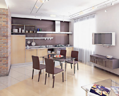Экономичный вариант кухни-столовой: минимум сложных отделочных