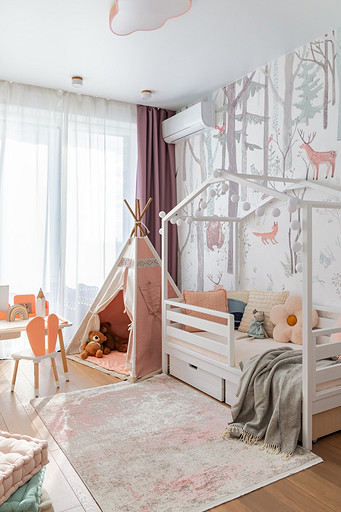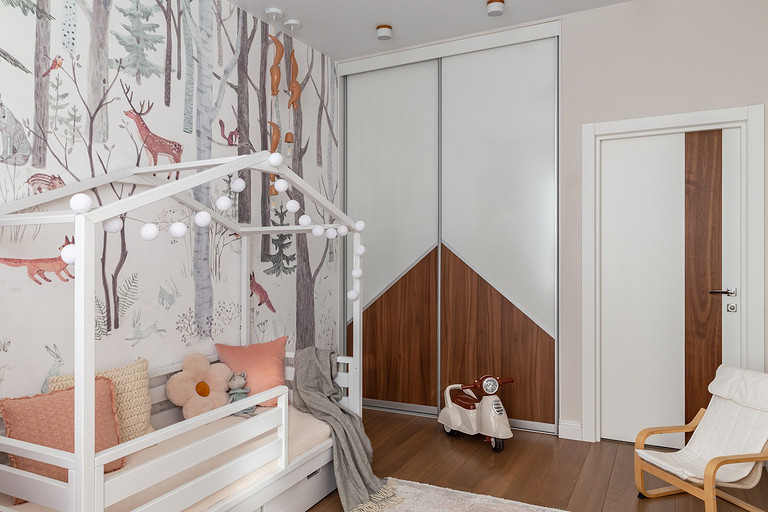 - Стены и пол: керамогранит Porcelanosa, Dune, Lantic Colonial, инженерная доска Goodwin, обои в детской Factura
