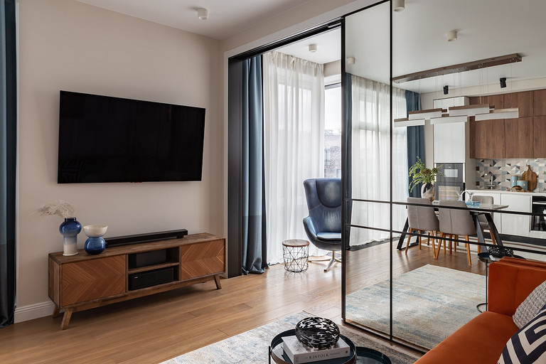 В этой двушке дизайнер выделила отдельный кабинет для главы семьи — жертвовать спальнями не пришлось. Все благодаря хорошей планировке. Читать далее...