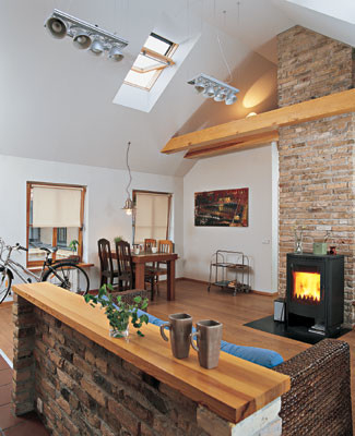 Квартира-студия площадью 55 м2 на мансардном этаже «дома с историей» в Вильнюсе. Камин — нововведение, повлиявшее на планировку и дух жилища. Читать далее...