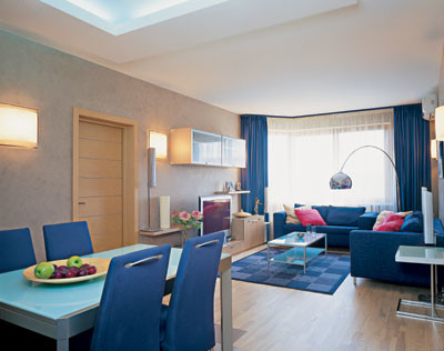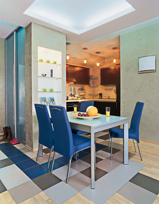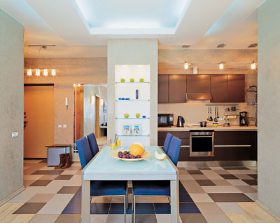 - Пол: керамогранит, доска паркетная из беленого ясеня