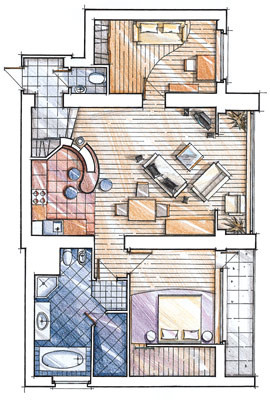 - Пол: плитка керамическая Marazzi, плитка керамическая MASERIN