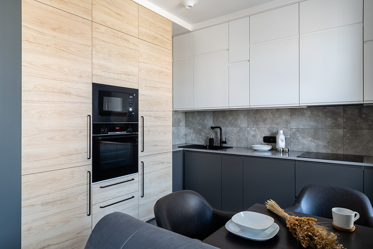 - Мебель: стол и кухонный гарнитур ИКЕА, стулья DeepHouse
