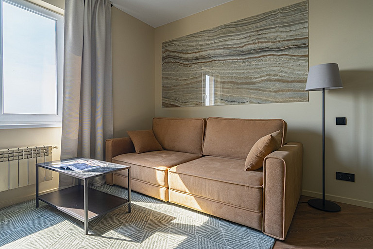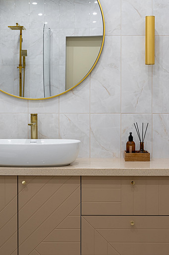 - Аксессуары и декор: на стене керамогранитная плита 119,5 × 238,5 мм из коллекции Milano (Kerama Marazzi), H&M Home
