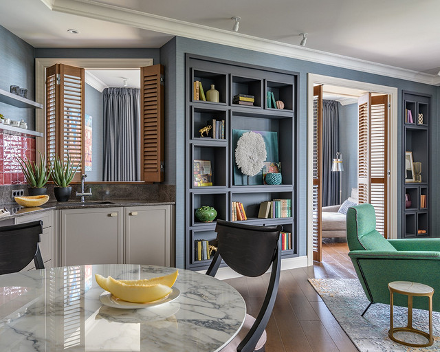 - Мебель: кухонный гарнитур Nolte Küchen, полка, жалюзийные двери, тумба, стеллажи — столярная мастерская «Юнинформ мебель», кресла Aerre Italia, журнальный столик Dantone Home, диван Giulio Marelli