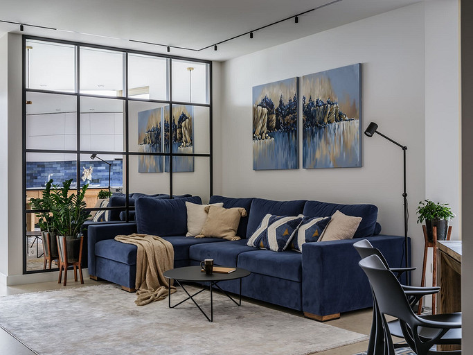 - Мебель: диван Estetica, журнальный столик Prostoria, обеденные стулья Kartell