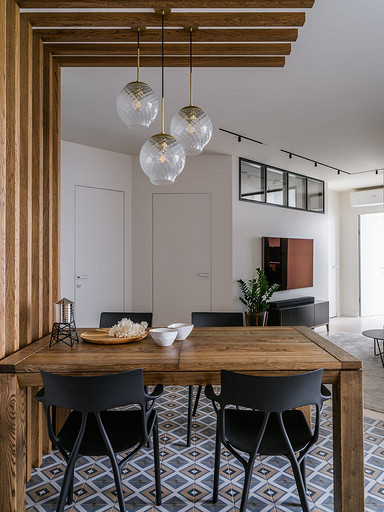 - Освещение: треки «Центрсвет», торшер ИКЕА, подвесные светильники над обеденным столом Handle Studio