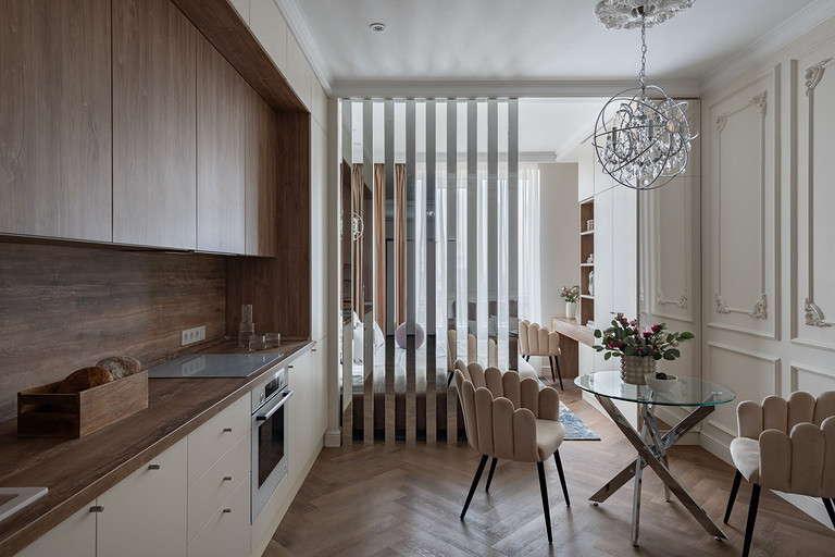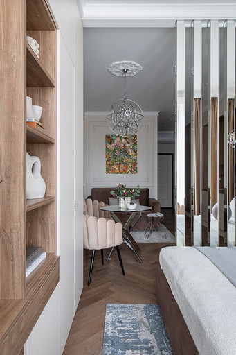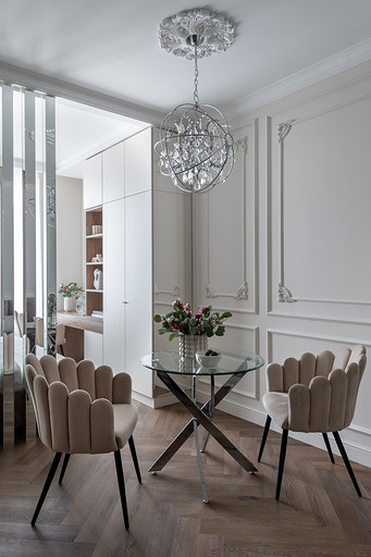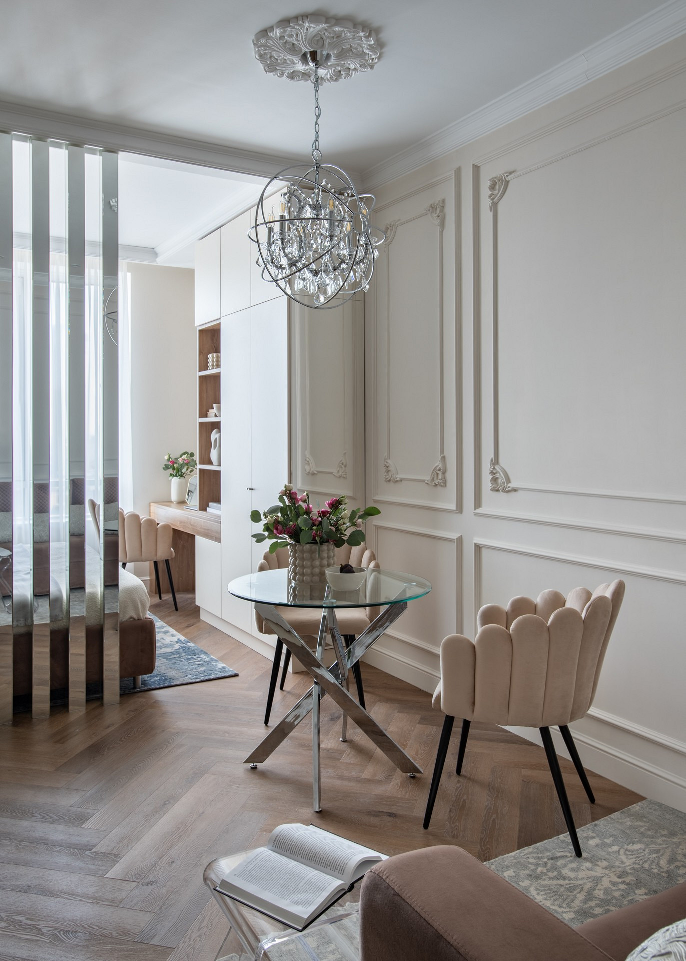 Стиль оформления этой квартиры не совсем типичный для маленьких пространств — выбрали современную классику с соответствующими атрибутами: стены украшают молдинги, а потолки — лепнина. Читать далее...