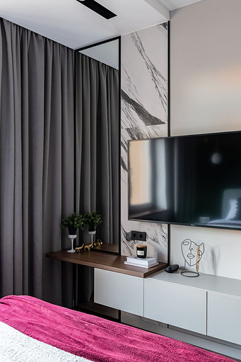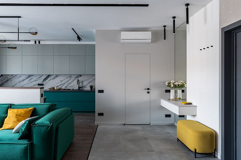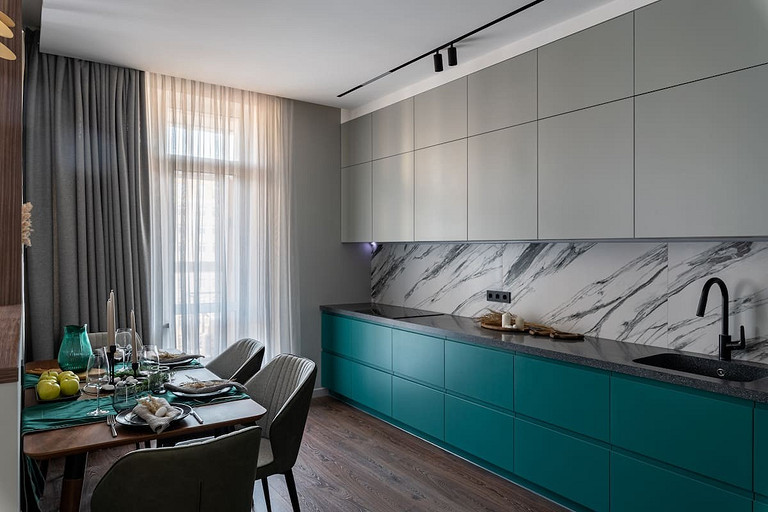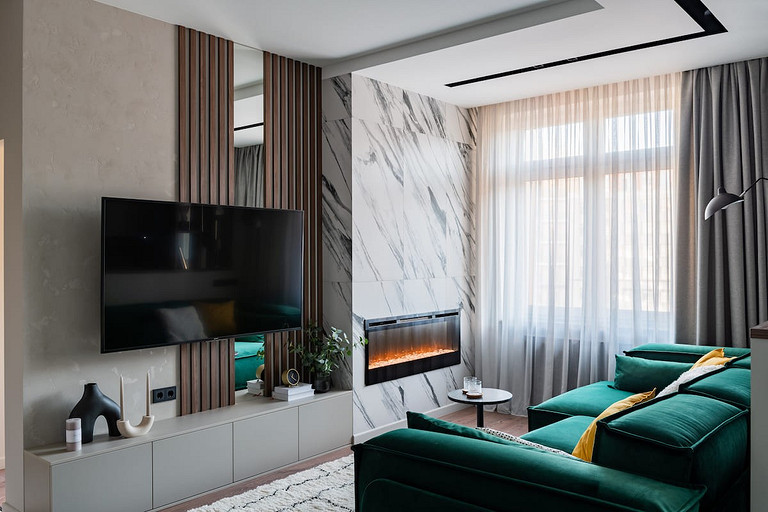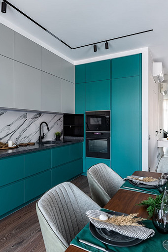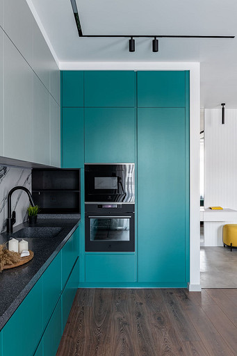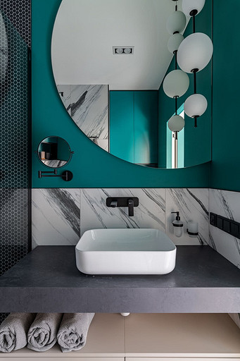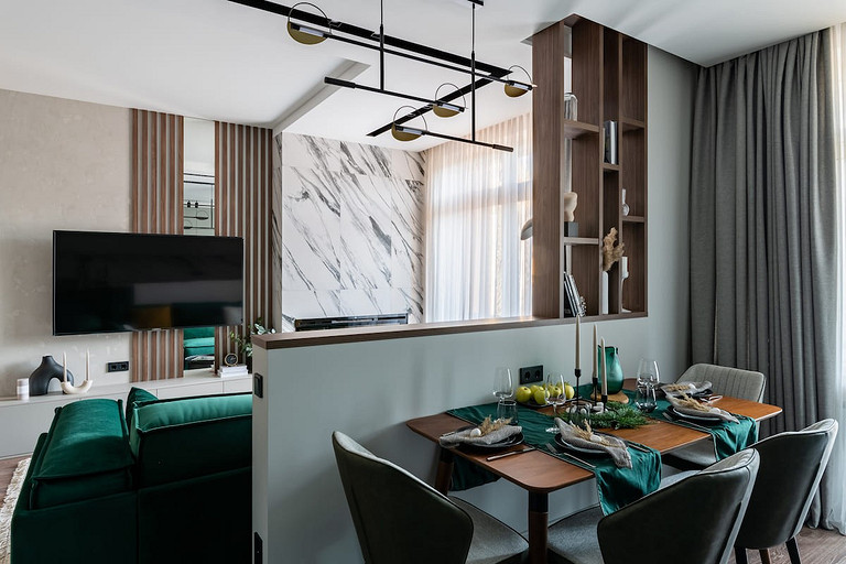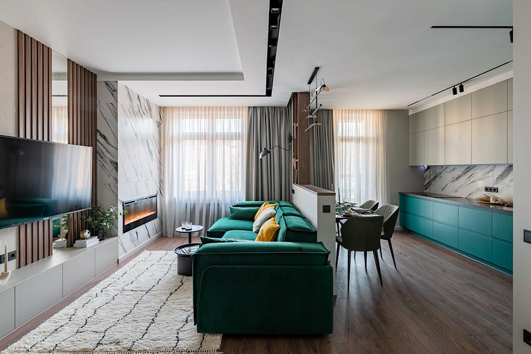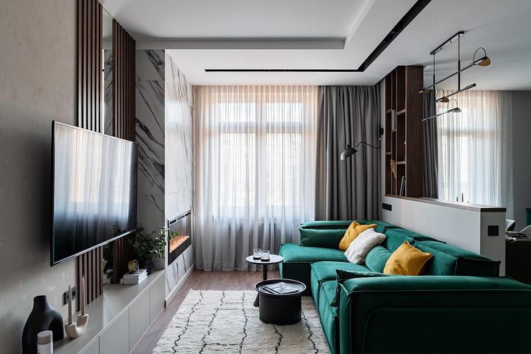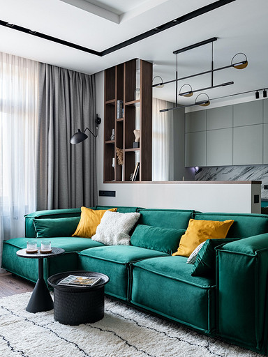 Заказчики просили создать молодежный интерьер и использовать цветные акценты. Отправной точкой для гостиной послужил яркий изумрудный диван, а в спальне заиграл насыщенный малиновый оттенок. Читать далее...