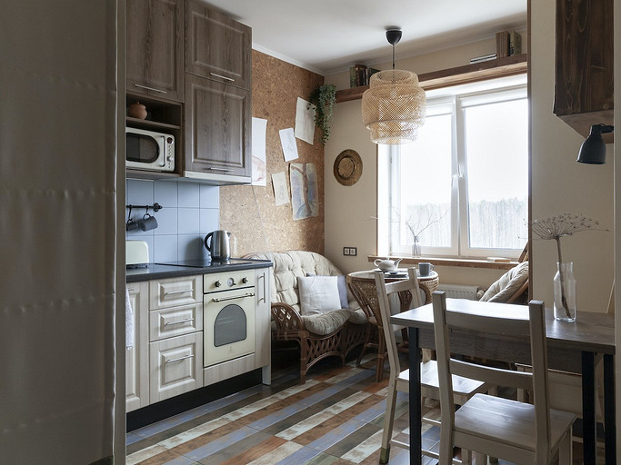 - Стены: пробка Art Cork Design, плитка на фартуке Kerama Marazzi