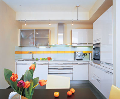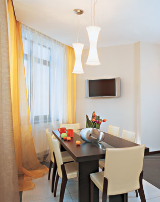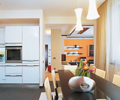 Трехкомнатная квартира площадью 118,2 м2 в доме-новостройке: жесткий контраст черного и белого цветов разбавляют сочные оранжевые акценты. Читать далее...