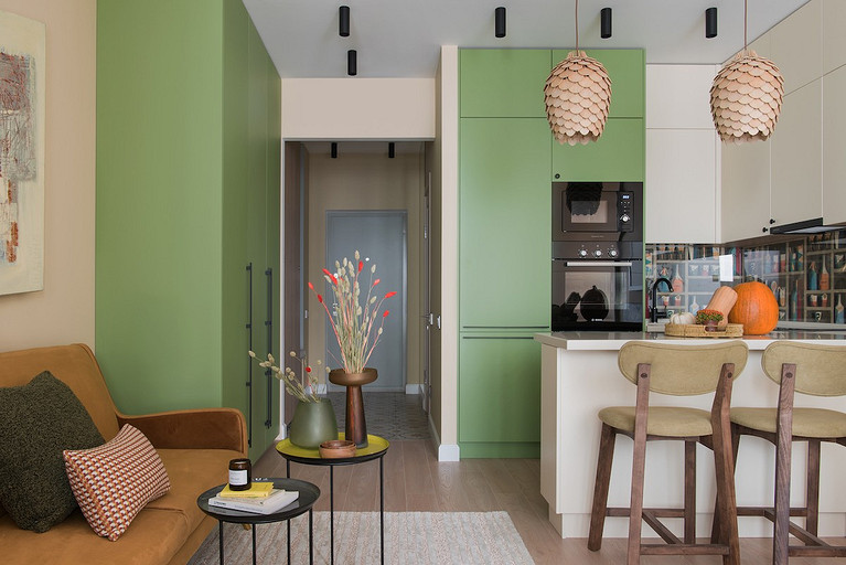 Дизайнер спроектировала интерьер апартаментов для сдачи в аренду. Благодаря цвету и нетривиальным решениям (вроде фартука из обоев) интерьер выглядит не банально и привлекательно. Читать далее...