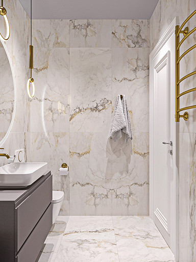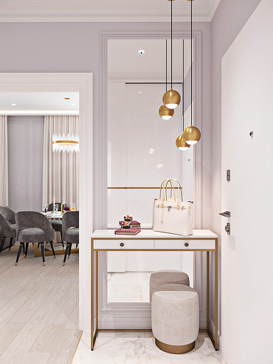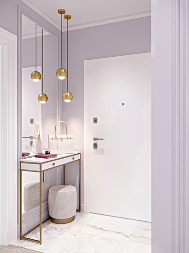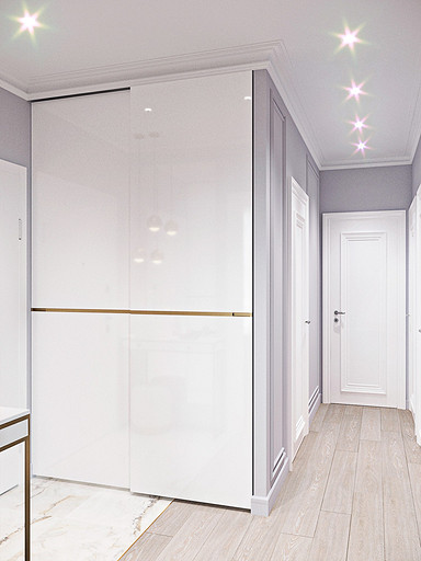 Проект трехкомнатной квартиры, площадью 76 кв.м, для молодой семьи с 2-мя сыновьями в современном стиле с элементами неоклассики и ар-деко.