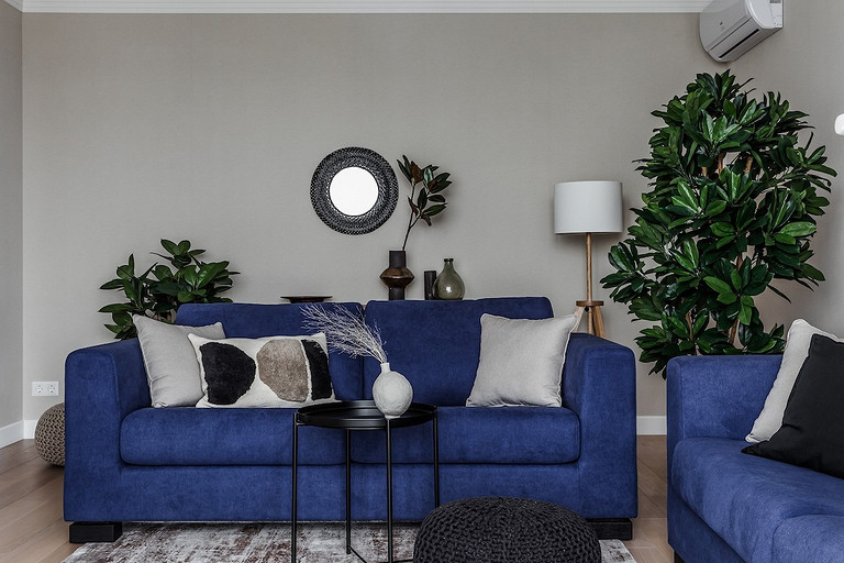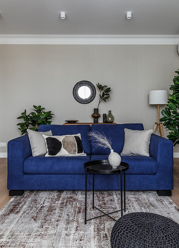 - Мебель: диваны Estetica, консоль «Белфан», корпусная мебель — местная столярная мастерская