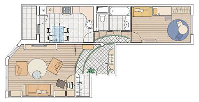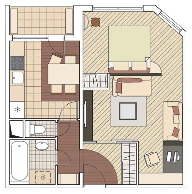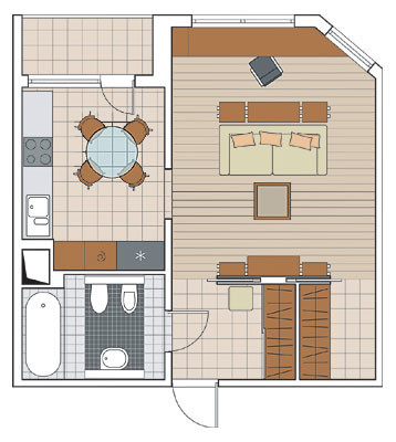 Поскольку диванная группа каждый вечер трансформируется в спальню, желателен мобильный журнальный столик на колесиках