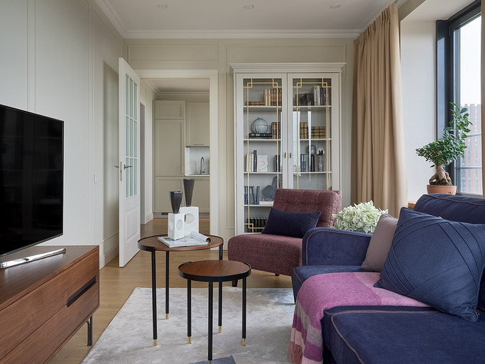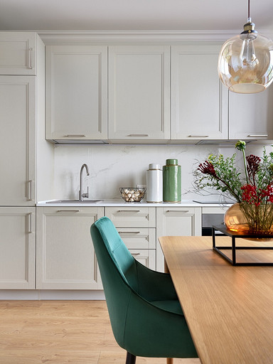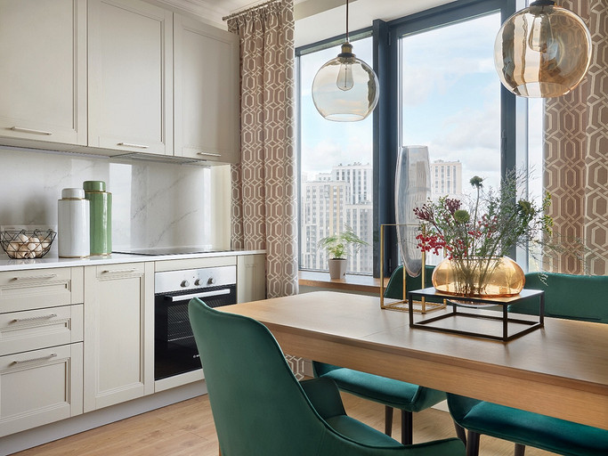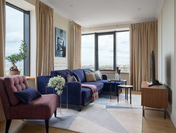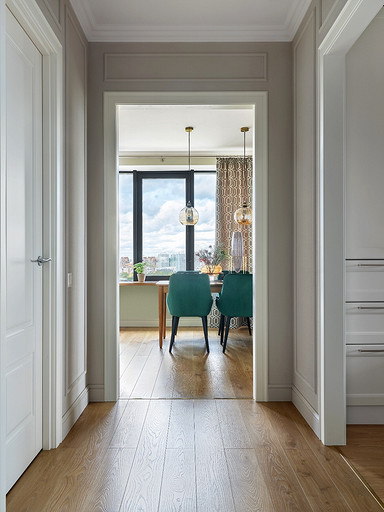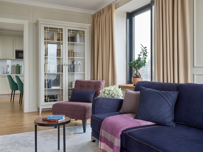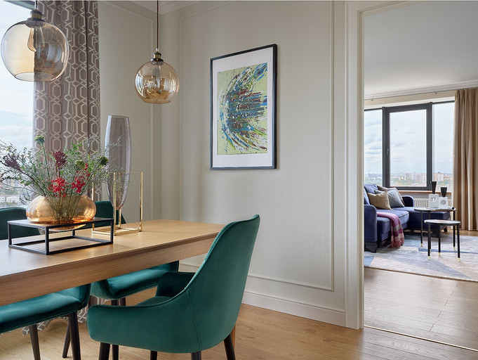 На фоне светлой классической базы выгодно выделяются яркая мебель и предметы искусства. Кроме визуальной составляющей эта квартира привлекает еще и грамотной планировкой — дизайнеры отлично разделили пространство на общую и приватную зоны. Читать далее...