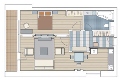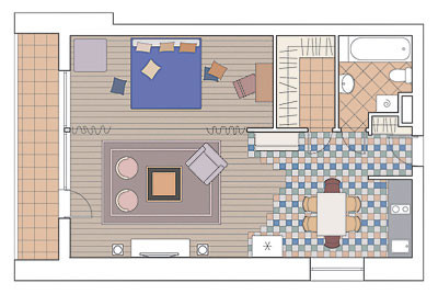 Стена гостиной, примыкающая к детской, требует усиленной звукоизоляции- рядом с ней расположены источники шума (акустические колонки музыкального центра и домашнего кинотеатра), которые могут нарушать