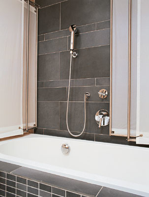 Оригинальные складные шторки в форме парусов позволяют использовать ванну как душевую кабину