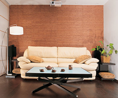 Столешница стола-трансформера фиксируется на разной высоте. Во время восточной церемонии чаепития она опускается совсем низко, а гости рассаживаются на полу, подложив подушки в чехлах из корня гиацинта, которые