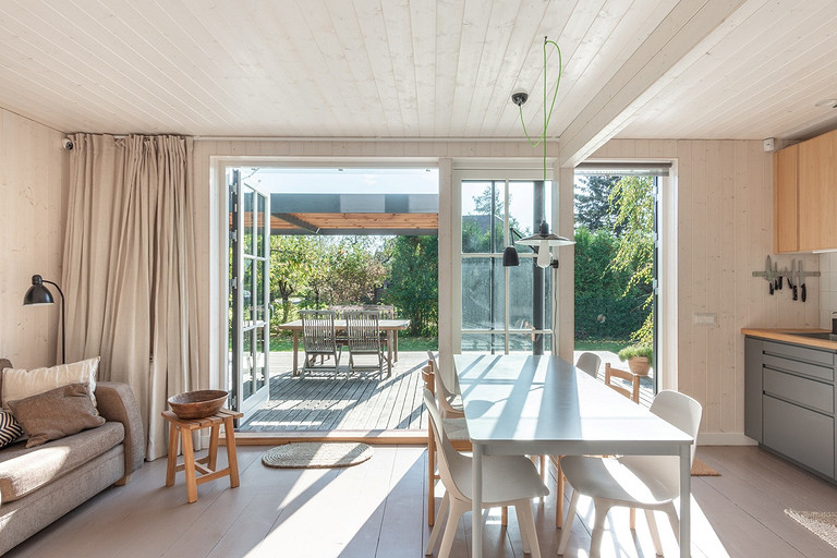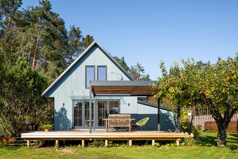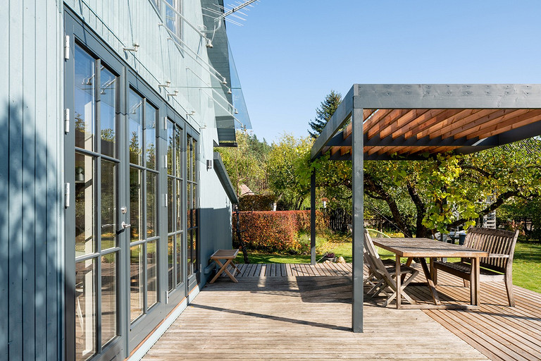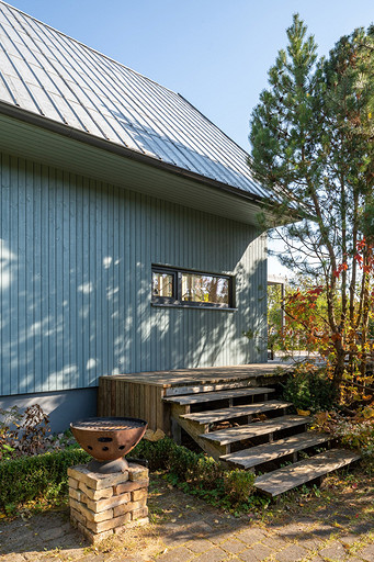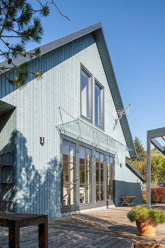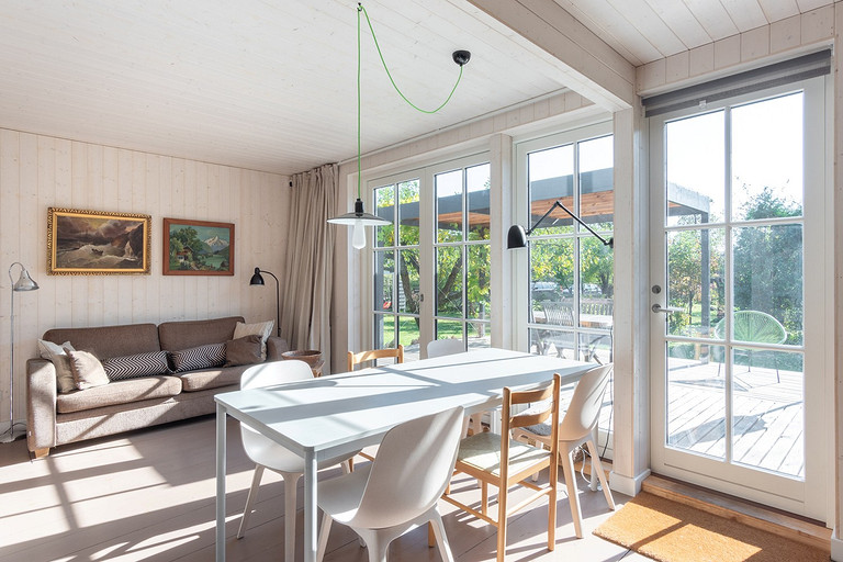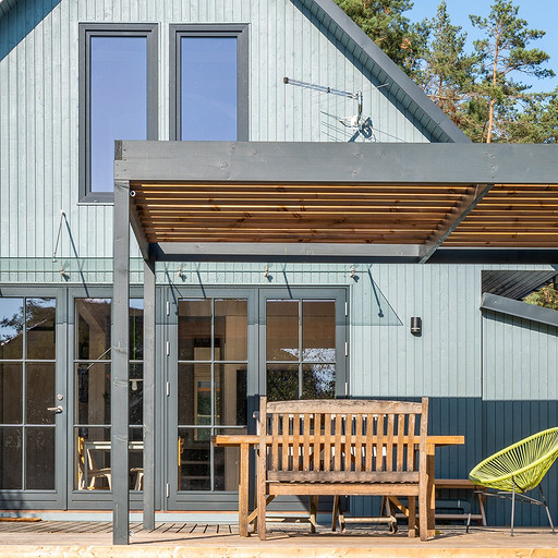 - Стены: дощатая обшивка, краска Teknos, керамогранит