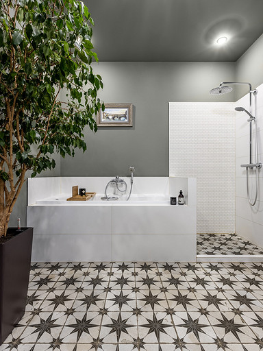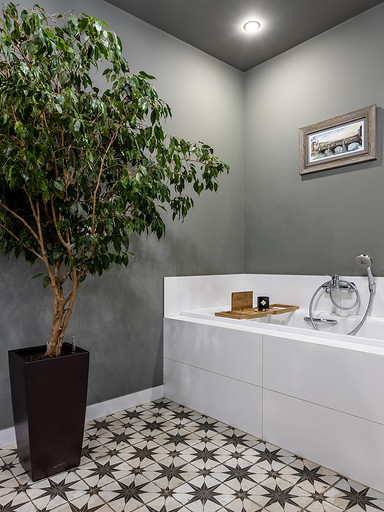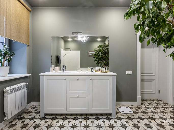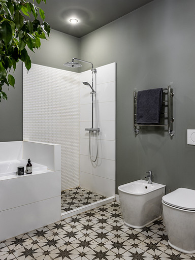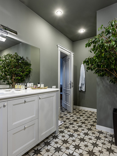 - Потолки: подвесная конструкция из металлических профилей с обшивкой ВГКЛ, Flugger, Orac Decor