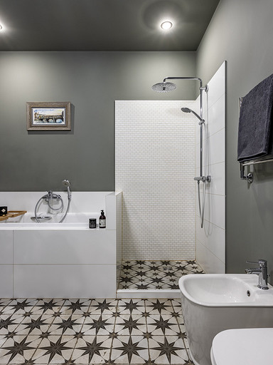 - Стены: гипсовая штукатурка Knauf Rotband, гипсовая шпаклевка Knauf Rotband Finish, краска Kansai Paint