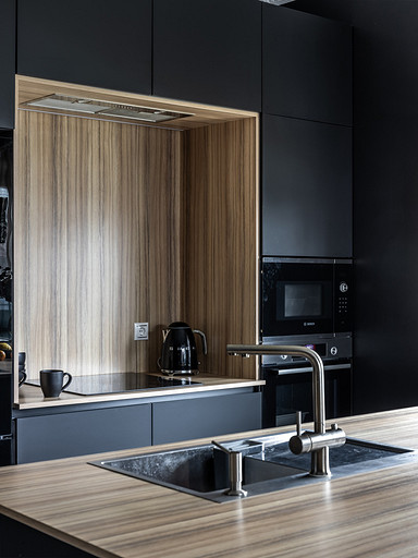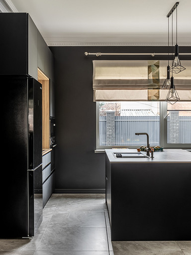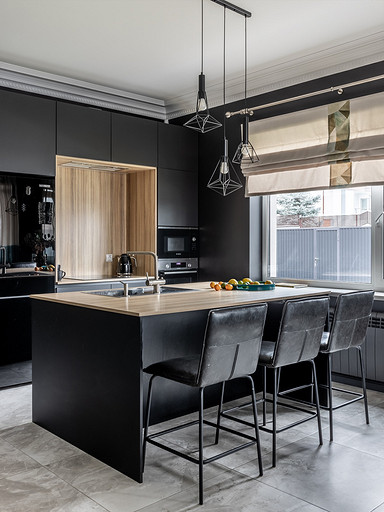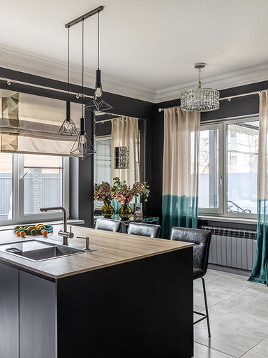 Насыщенная палитра интерьера таунхауса поражает воображение. Особенно показательна кухня-гостиная, выдержанная в черном цвете. Total-black размывает границы не слишком большого помещения. Пространство смотрится невероятно декоративным даже без обилия аксессуаров. Читать далее...