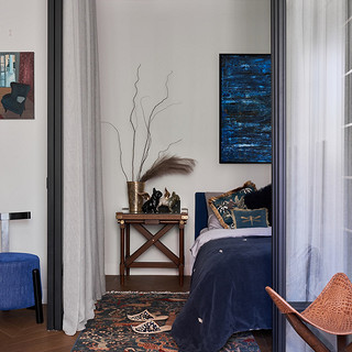 Чтобы обустроить в спальне систему вентиляции, вентиляционную решетку сплит-системы устраивают в стене напротив кровати, внутренний блок канального кондиционера прячут в шкафу в комнате сына, а воздуховоды- за подшивным потолком