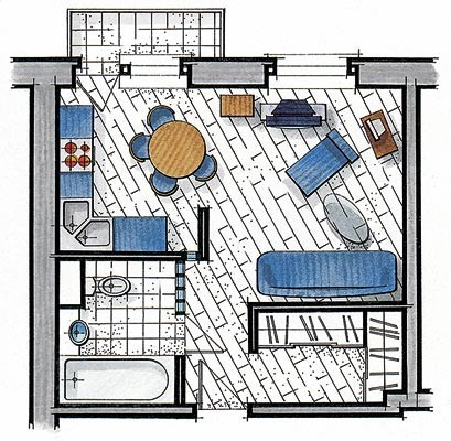 Реконструкция однокомнатной квартиры общей площадью 34,8 м2 в доме серии II-18, произведенная собственными силами одной московской семьи. Читать далее...