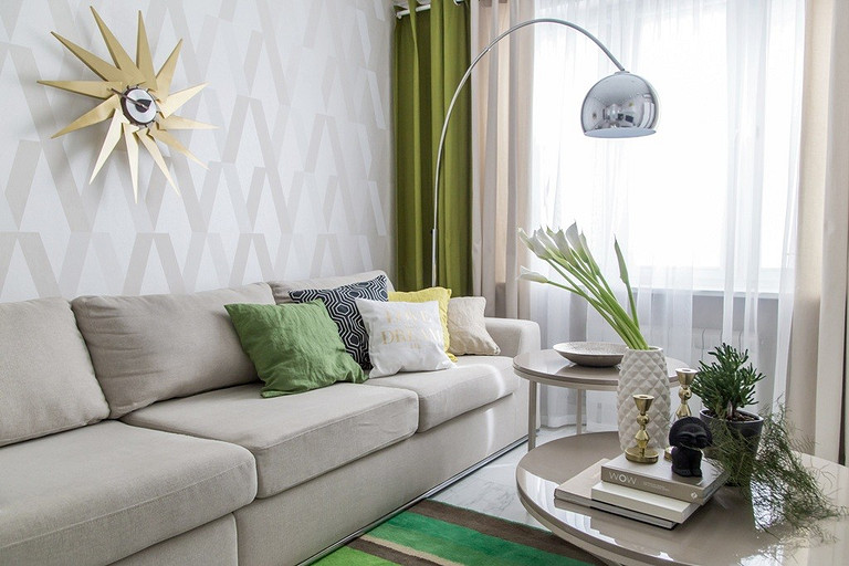 В маленькой московской квартире традиционная планировка, но совсем не тесно. Автор проекта нашёл удобные и эстетичные способы решить практические задачи и придать холостяцкому жилью индивидуальный облик без лишних трат. Интересная цветовая гамма и современный дизайн придают интерьерам воздушную глубину и создают позитивное настроение.