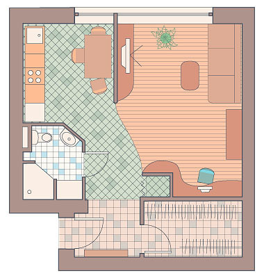 | Кухня | 7,6 м2 | 6,7 м2 |