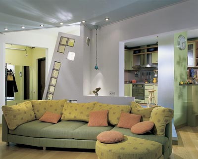 Блок одно- и двухкомнатных квартир общей площадью 92 м2 в панельном доме серии КОПЭ. Супрематический дизайн и мебель от IKEA. Читать далее...