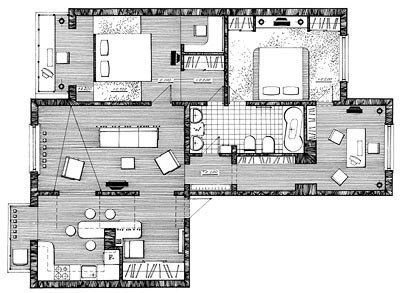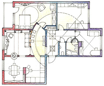 Семь вариантов перепланировки блока одно- и двухкомнатных квартир общей площадью 92 м2 в панельном доме серии КОПЭ. Читать далее...