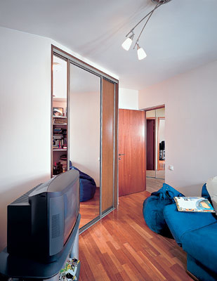 В детской тоже есть гардеробная-купе. Вэту маленькую комнатку ребенок может войти, чтобы положить или взять